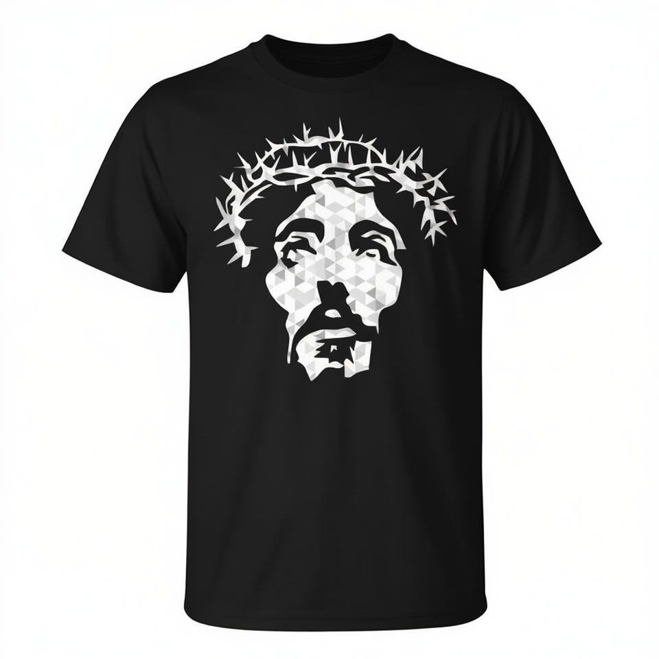 T-Shirt con Ritratto Astratto di Gesù Cristo, Nera, Collo Tondo, Manica Corta, Unisex, Stampa Digitale, Regalo Religioso per la Chiesa