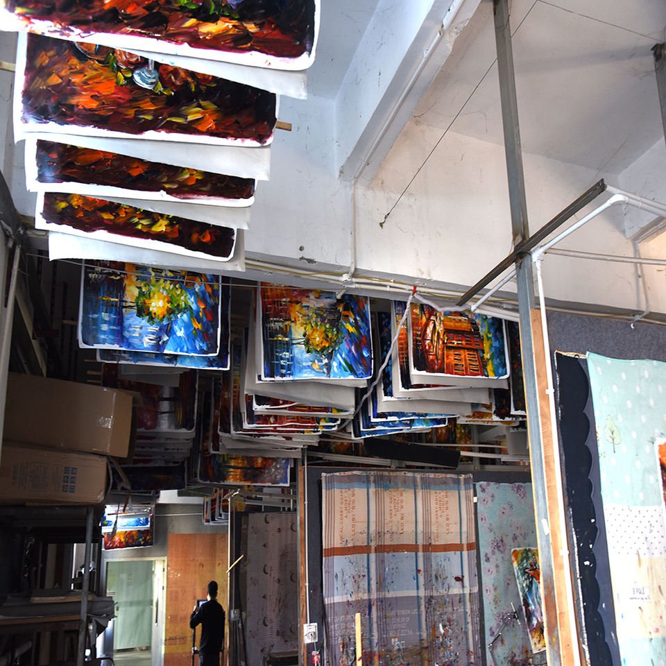 Only Canvas 1. Wrapped by plastic film. 2. Rolled in tube. 3. Wrapped by opp bag. Framed canvas 1. Protected with four paper corners and wrapped with shrink plastic bag outside. 2. Several products in one carton. 3. We can also pack the goods according to the clients' request.