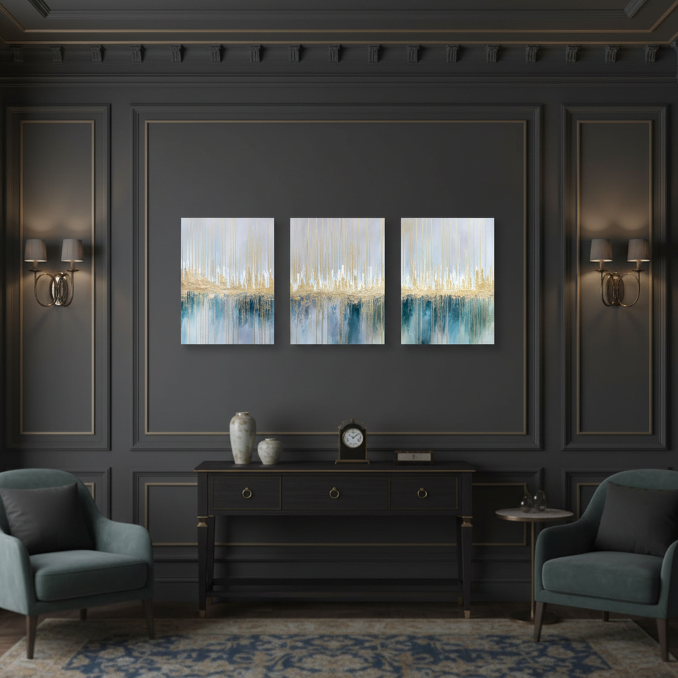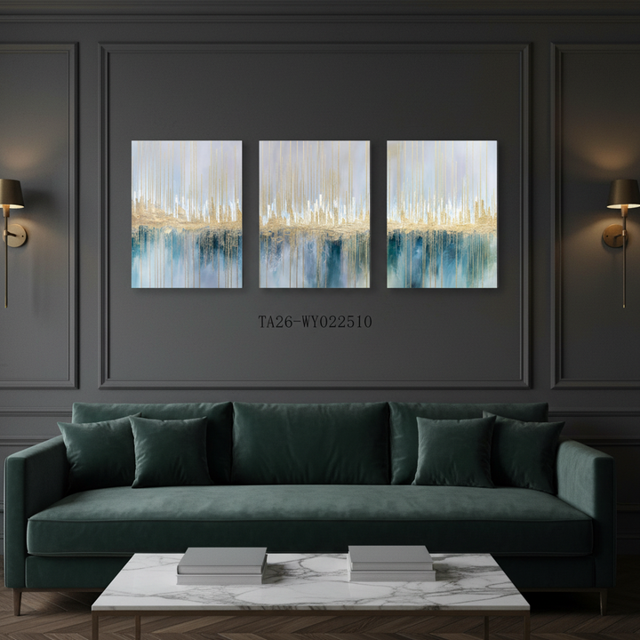 Set di 3 Quadri su Tela con Onde Oceaniche Astratte, Immagini Incorniciate per Arredamento Soggiorno e Camera da Letto