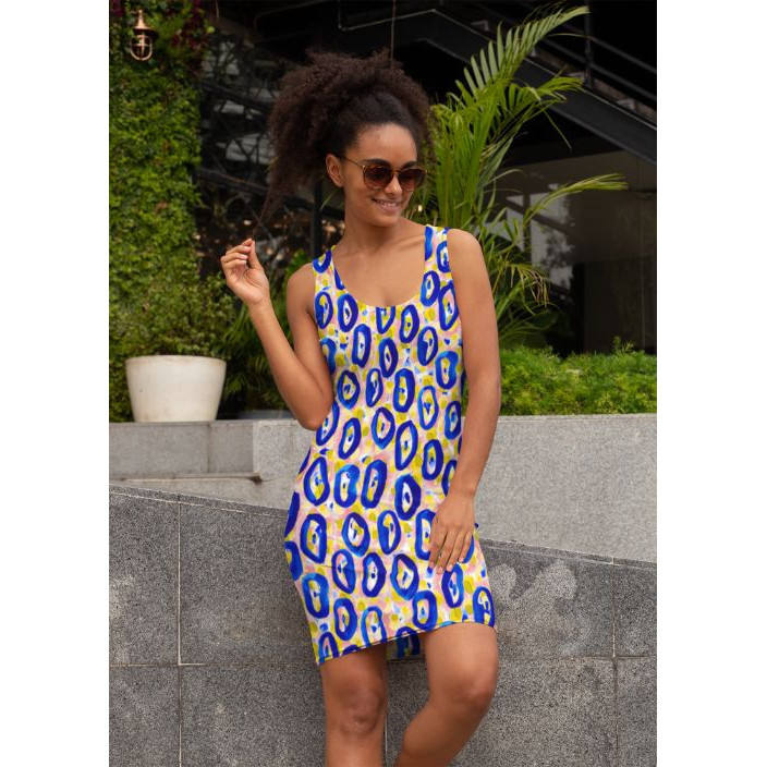 Abito con motivo astratto (38) con taglio e cuciture a sublimazione