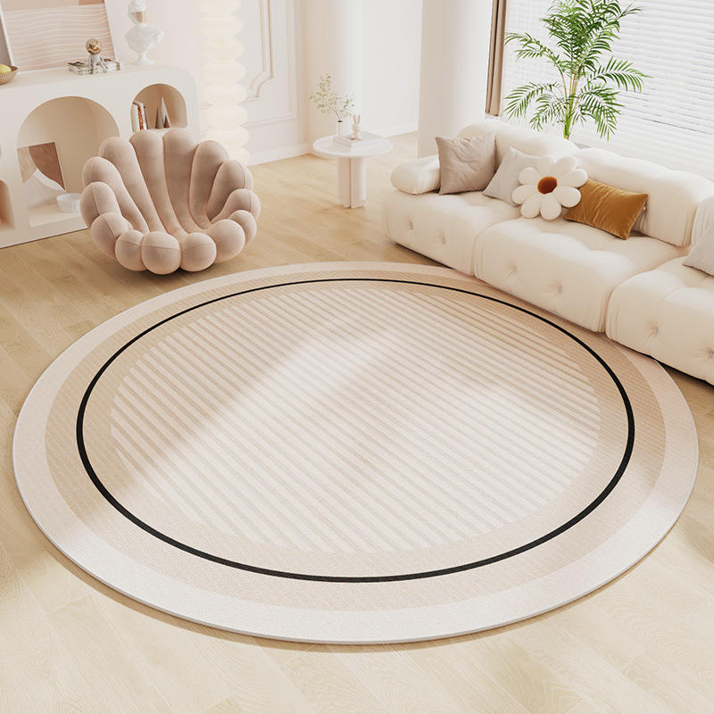 Tappeto Rotondo Astratto, Tappeto Decorativo Circolare, Tappetino Antiscivolo a Strisce, Tappeti Beige per Soggiorno