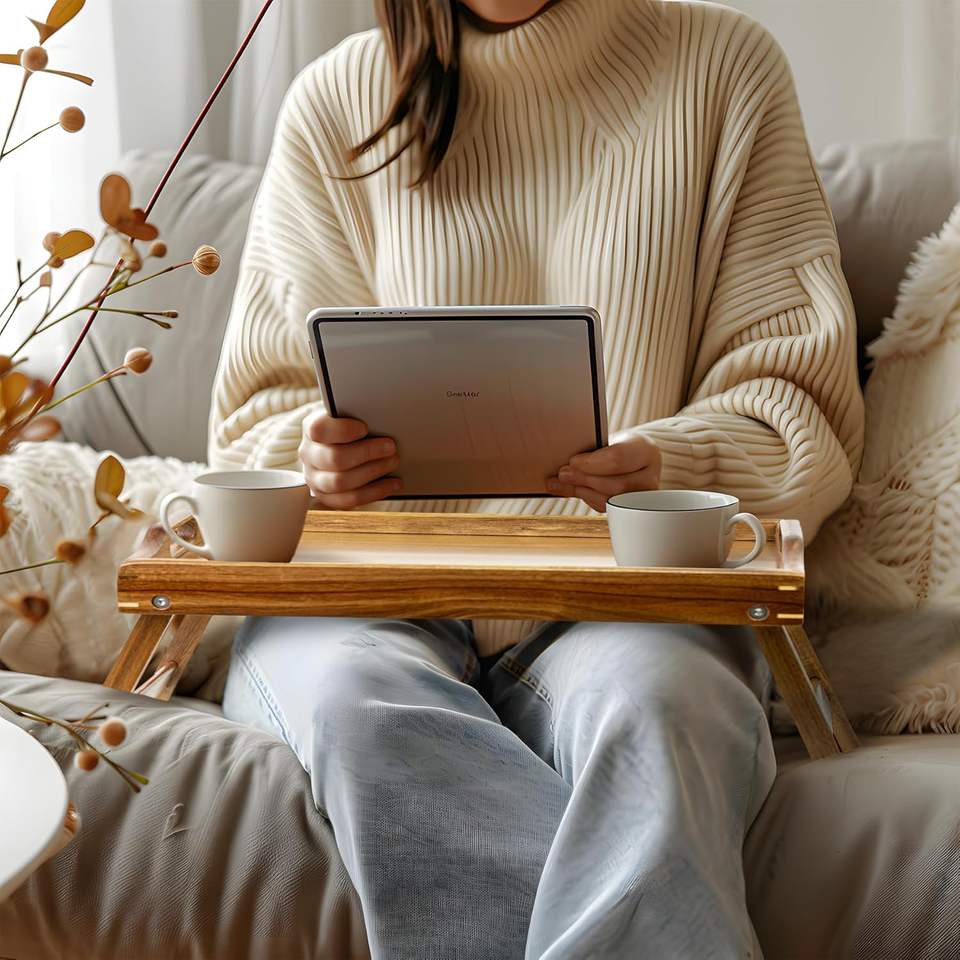Vassoio da letto in acacia per mangiare, vassoi per colazione a letto, tavolino pieghevole in legno per divano