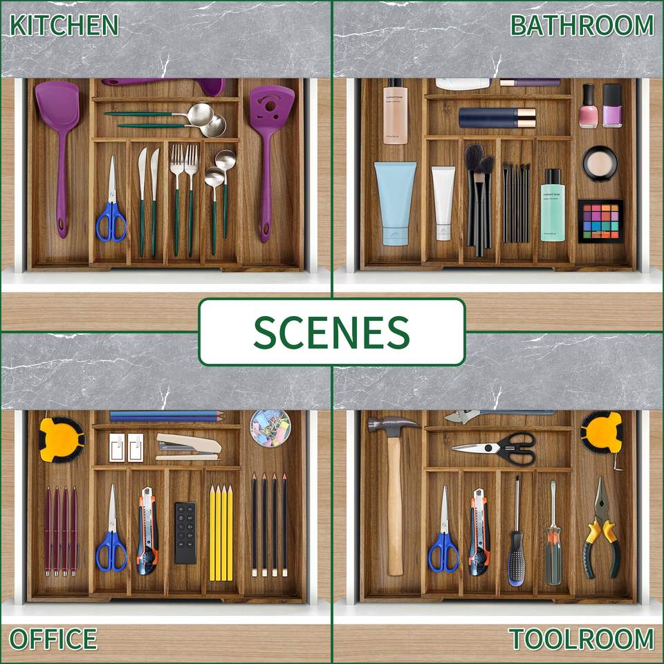 Acacia argenteria cassetto organizzatore posate utensili da cucina regolabili cassetti organizzatori accessori da cucina espandibili organizzare