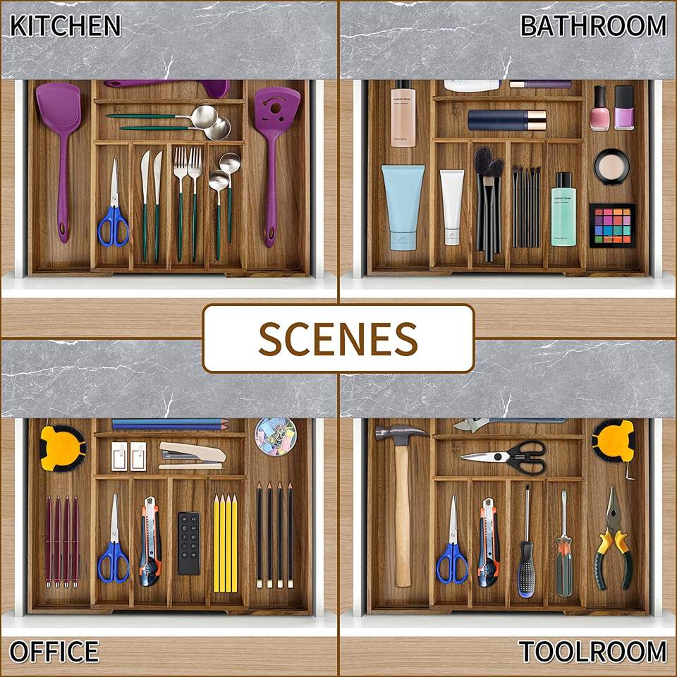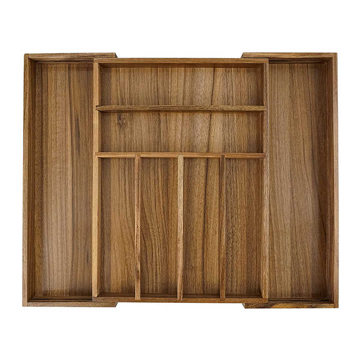 Organizzatore per cassetti da cucina in legno di acacia, vassoio espandibile per posate, porta utensili in legno