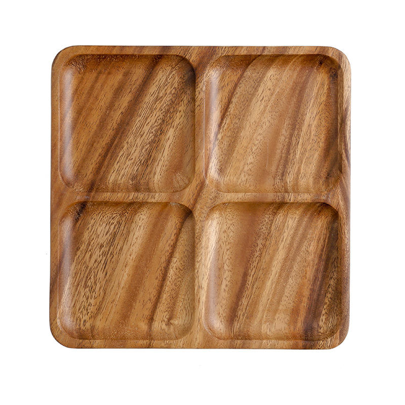 Piatto Quadrato in Legno di Acacia per Servire Cibo e Frutta con 4 Scomparti