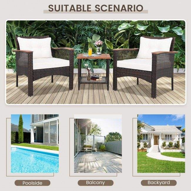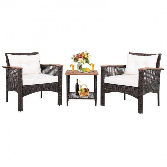 Set di Mobili da Giardino in Rattan a 3 Pezzi con Piano in Legno di Acacia