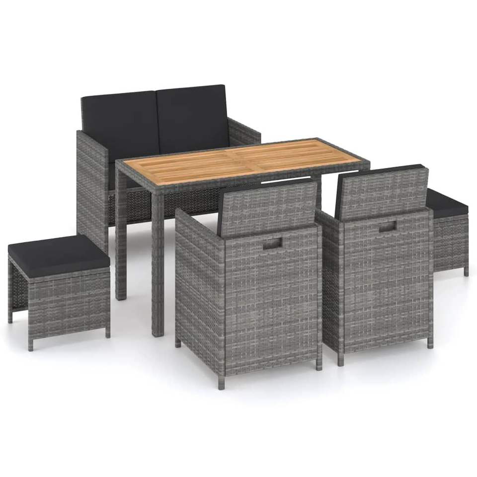 Set da pranzo con Patio in legno di Acacia e Poly Rattan in Set da giardino grigio