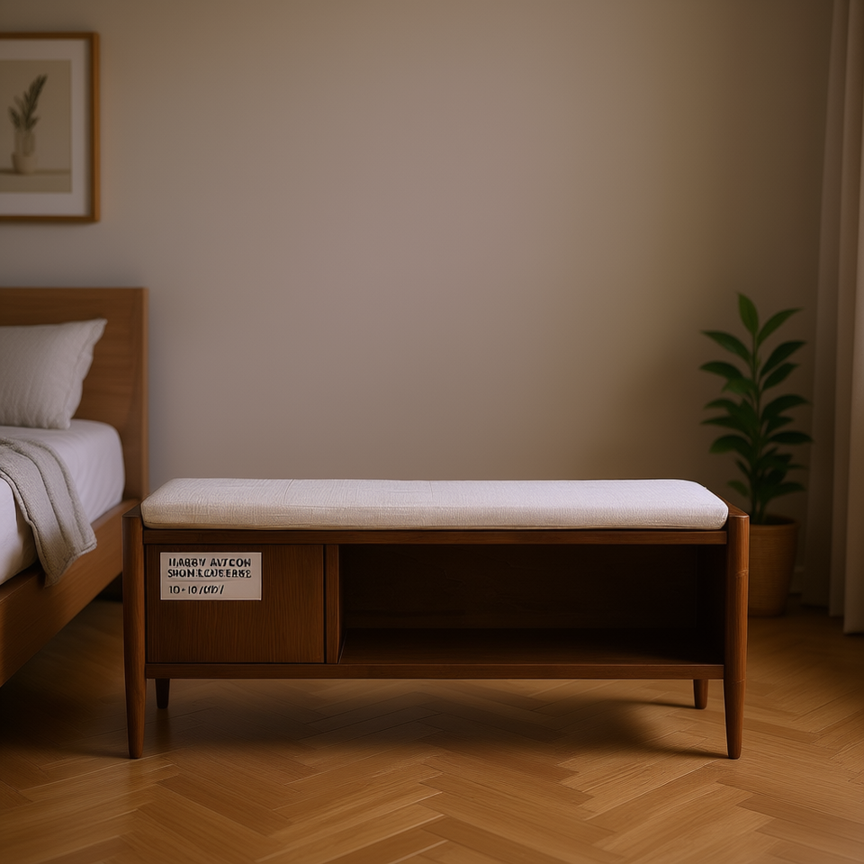 Accent Bedroom Bench With Storage And Upholstered Cushion Wood Midcentury Modern 1 Drawer Bedroom Furniture