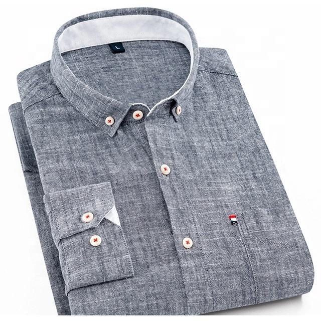 Accetta camicia da uomo personalizzata vestibilità regolare manica lunga respiro sottile camicie causali in cotone e lino per uomo
