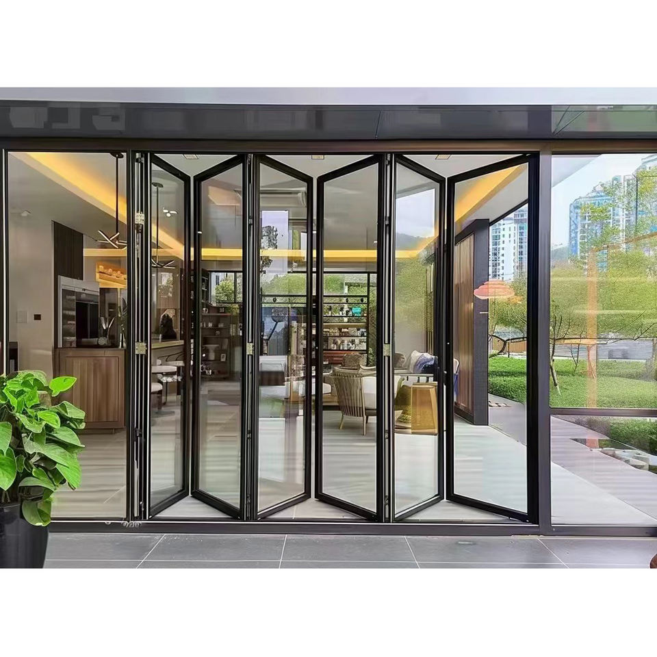 Porta Pieghevole in Vetro Serie 75 per Interni, Sale Riunioni, Docce, Patio, Armadi, Finestre Esterne, Tipo Bi Teza, 8 Pannelli