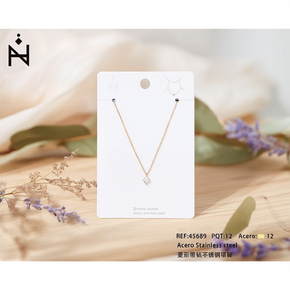 Acero Diamond Stainless Steel Necklace With Rhinestone Pendant 12mm Elegant Women Jewelry