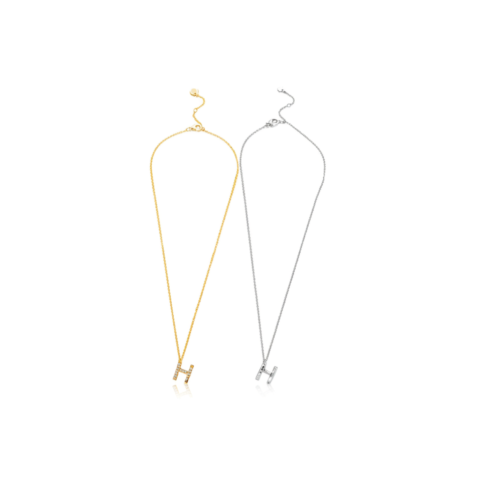 Acero Letter H Diamond Pendant Necklace Stainless Steel Gold Plated Classic Unisex Gift Jewelry