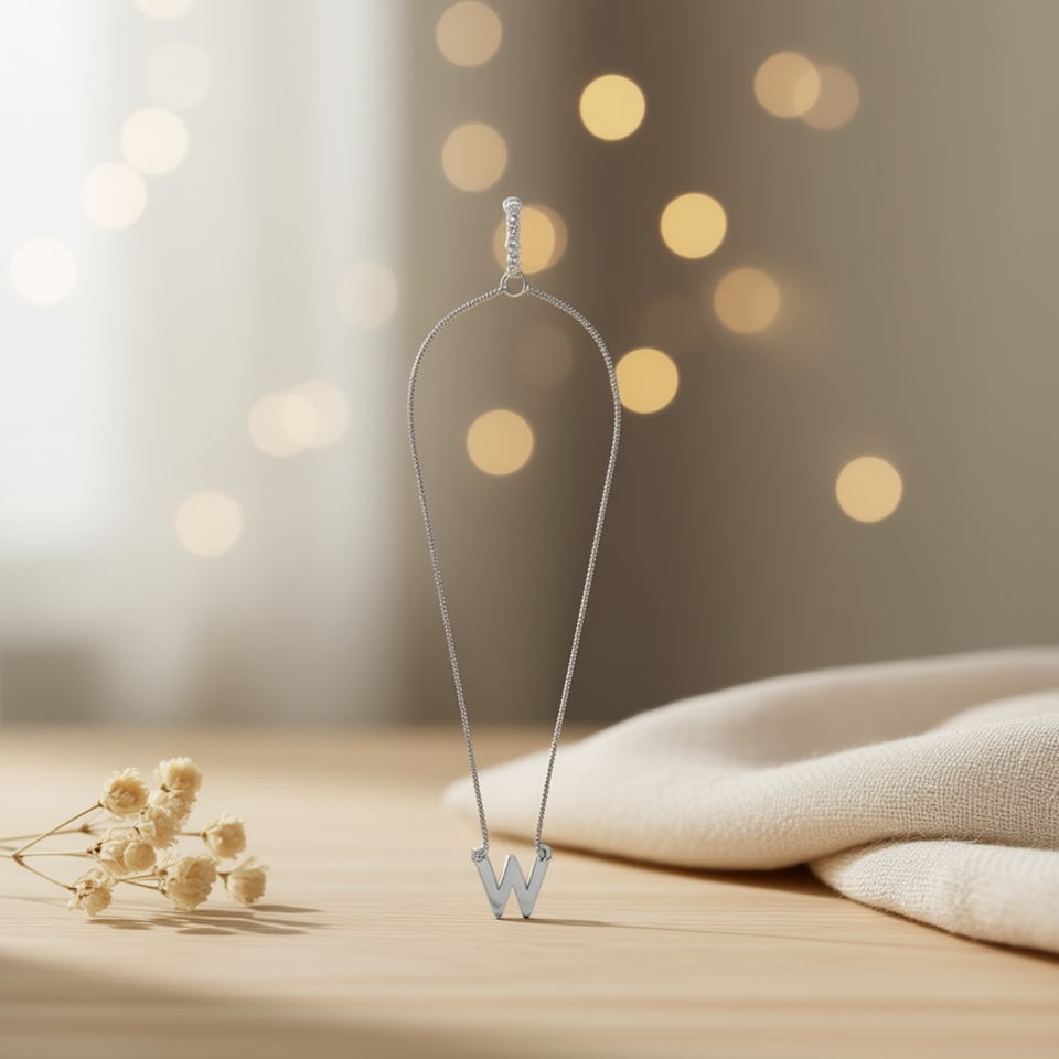 Acero Letter W Pendant Stainless Steel Necklace Unisex Classic Style Gold Plated 1Cm Single Sided