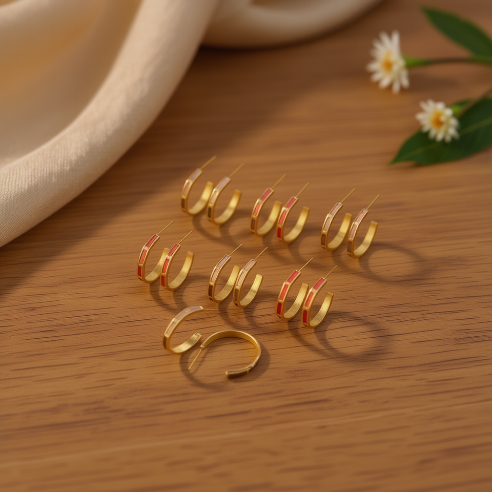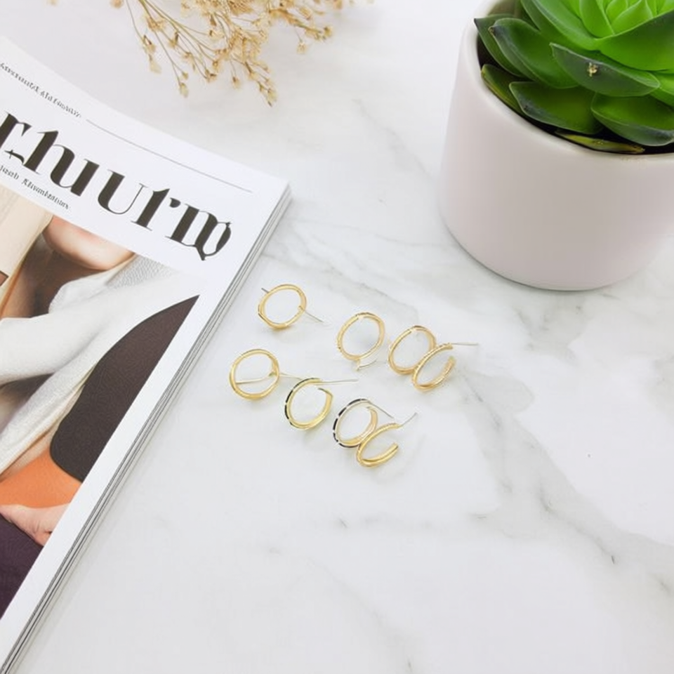Stainless Steel Hoop Earrings Gold Plated 12 Pairs Trendy Fashion Drop Earrings Unisex Jewelry China Made