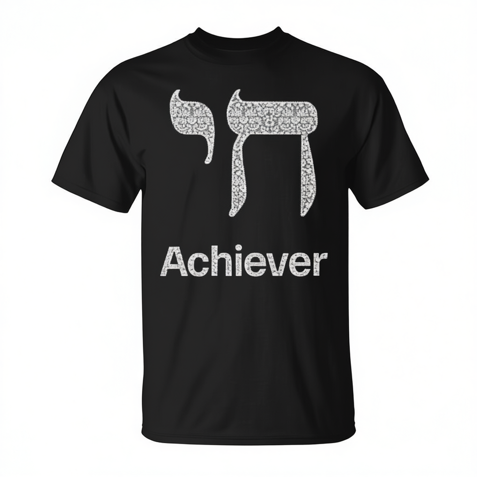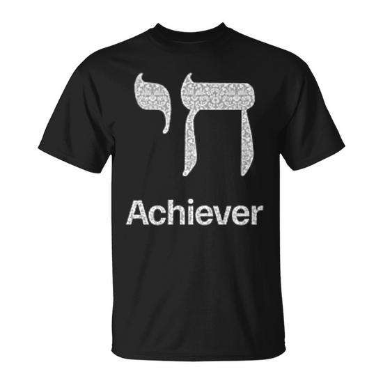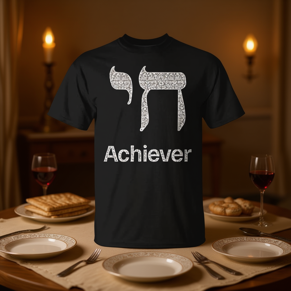 Achiever Hebrew Jewish Passover Promotional T-Shirt with Chai Design Digital Printing Crew Neck & Short Sleeve Unisex for Adults