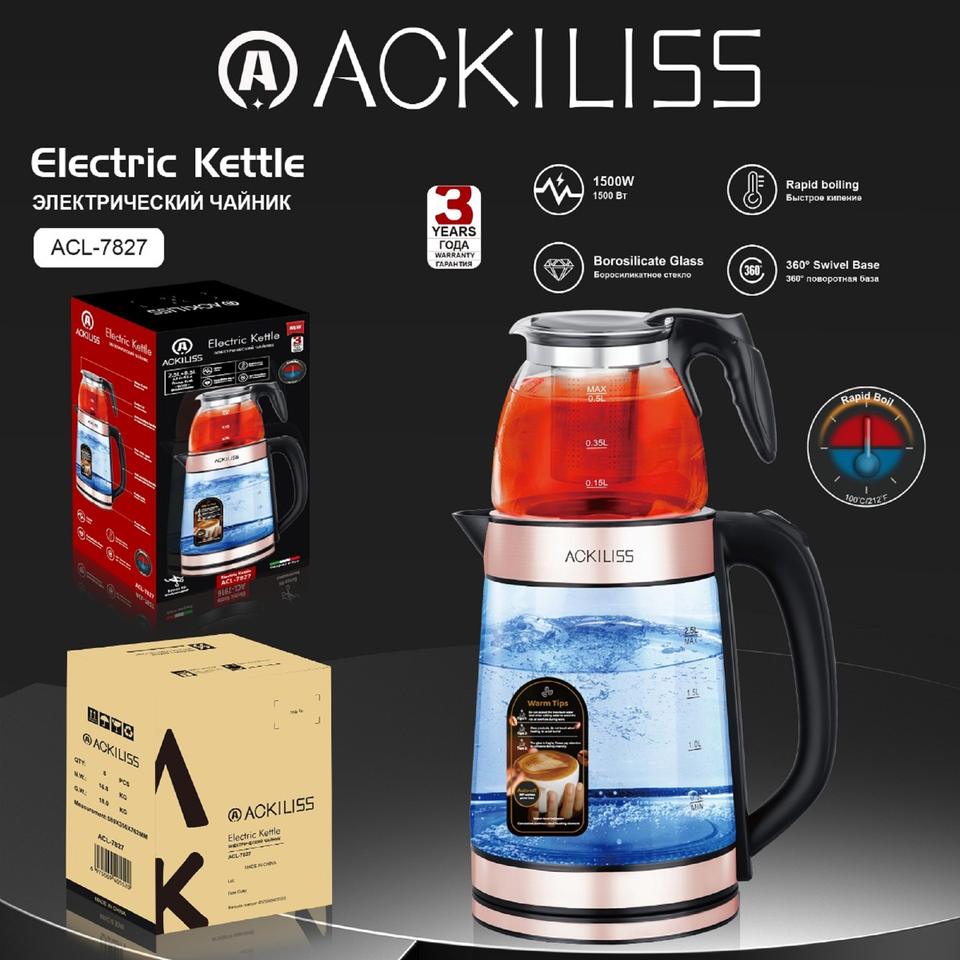 Bollitore Elettrico Ackiliss Multifunzionale per Uso Domestico in Vetro Borosilicato di Alta Qualità Teiera Elettrica per la Salute