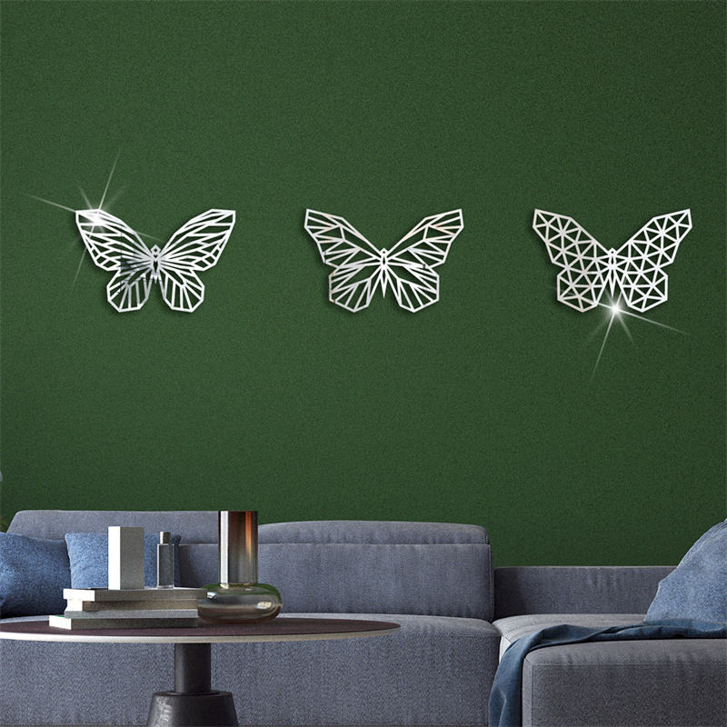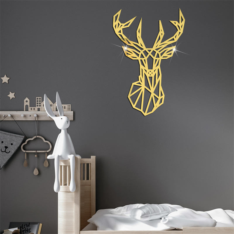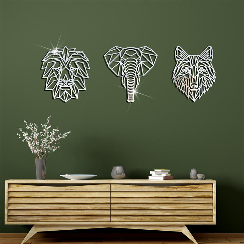Acrylic 3D Children's Room Decor Elephant Lion Horse Butterfly Wall Mirror Sticker Geometric Image Line Art Decoration