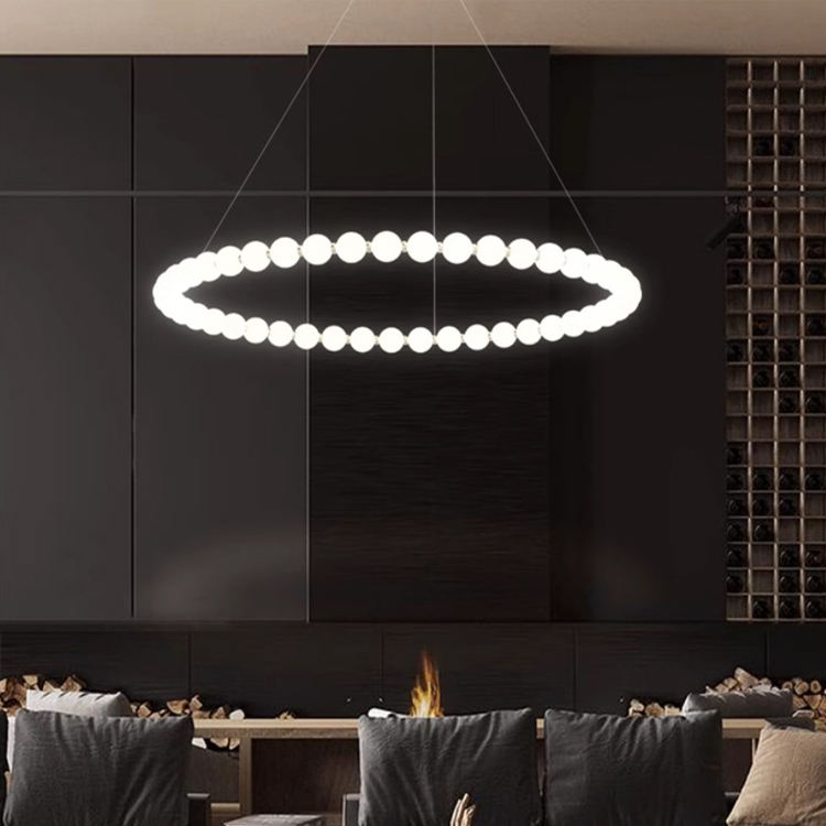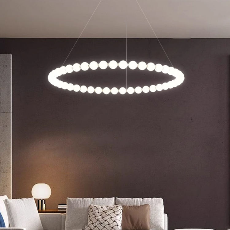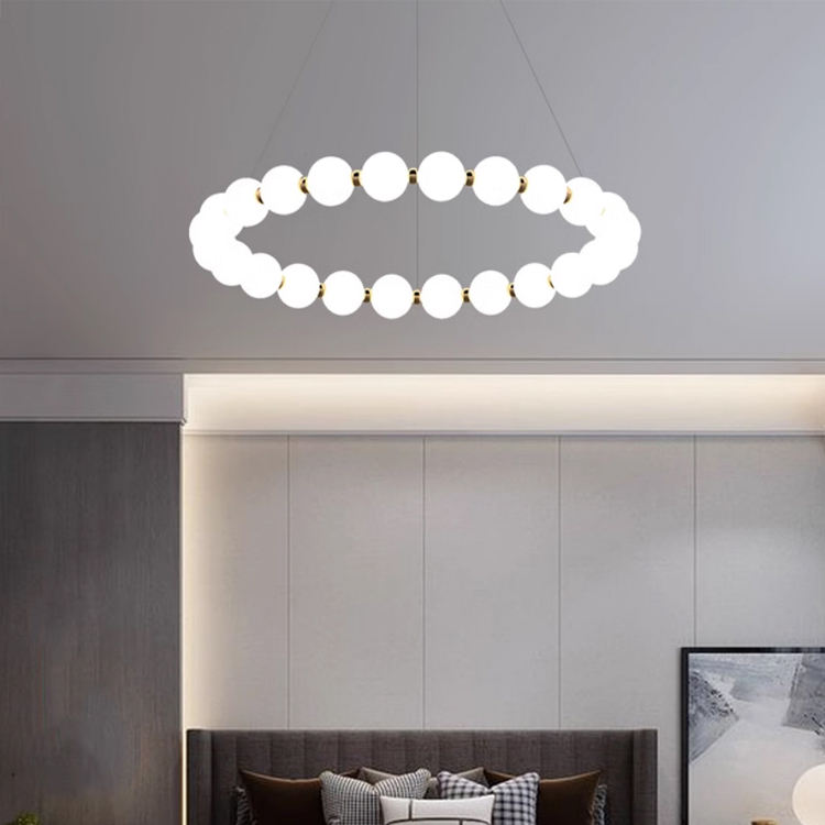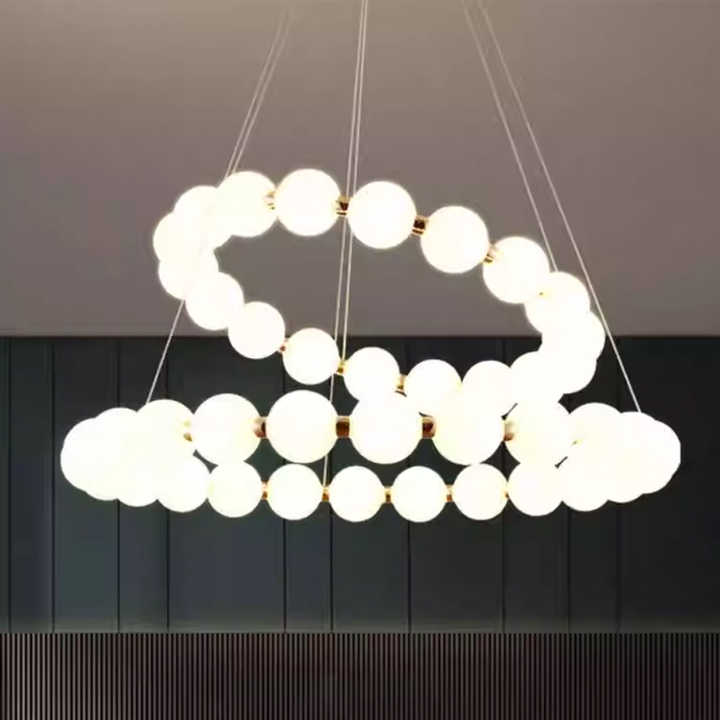Lampadario a Sospensione LED con Sfera in Acrilico, Forma di Collana Dorata di Lusso, Moderno per Soggiorno e Camera da Letto