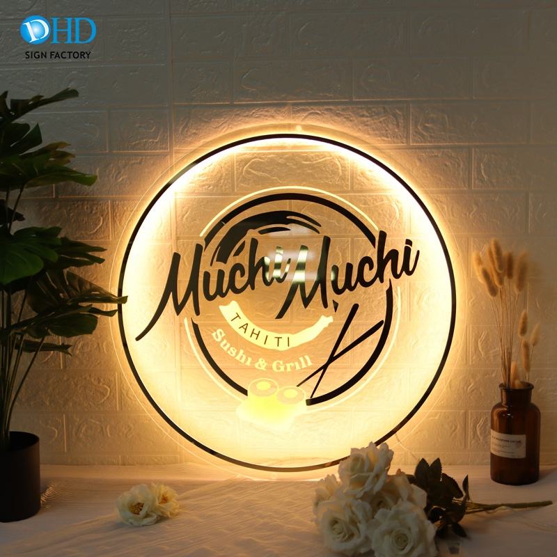 Insegna Aziendale in Acrilico con Lettere a Specchio 3D, Design Creativo Logo Rosa, Insegna Rotonda con Nome Scritto a Mano in Acrilico 3D