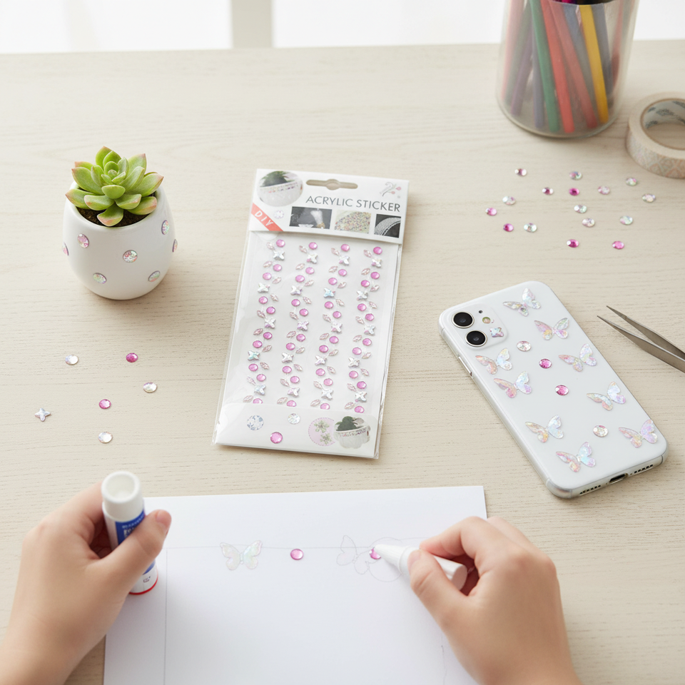 Acrylic Butterfly and Round Jewel Stickers 3D Printed Cartoon DIY Craft Decoration for Home Use