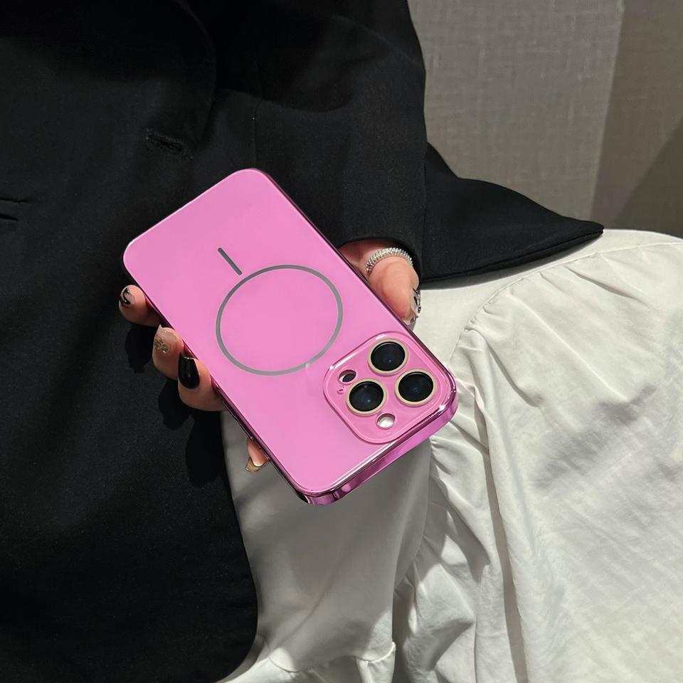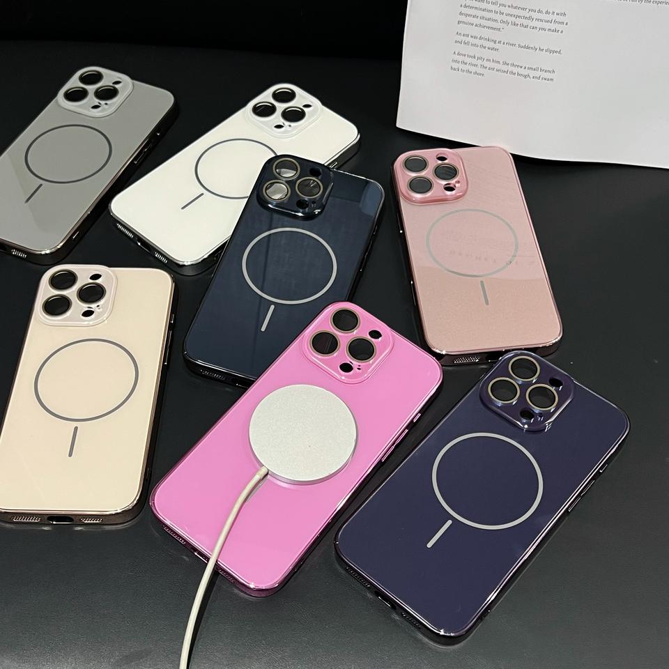 Acrylic Clear Phone Case Hard PC Metallic for iPhone 16 15 14 13 12 11 Pro Max with Camera Lens Film Protection Magnetic Cover