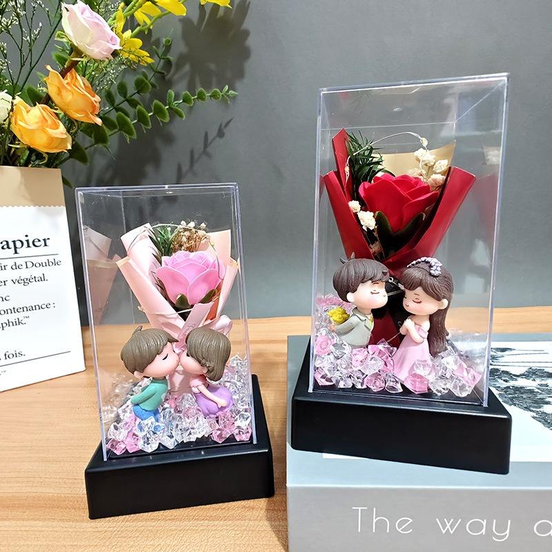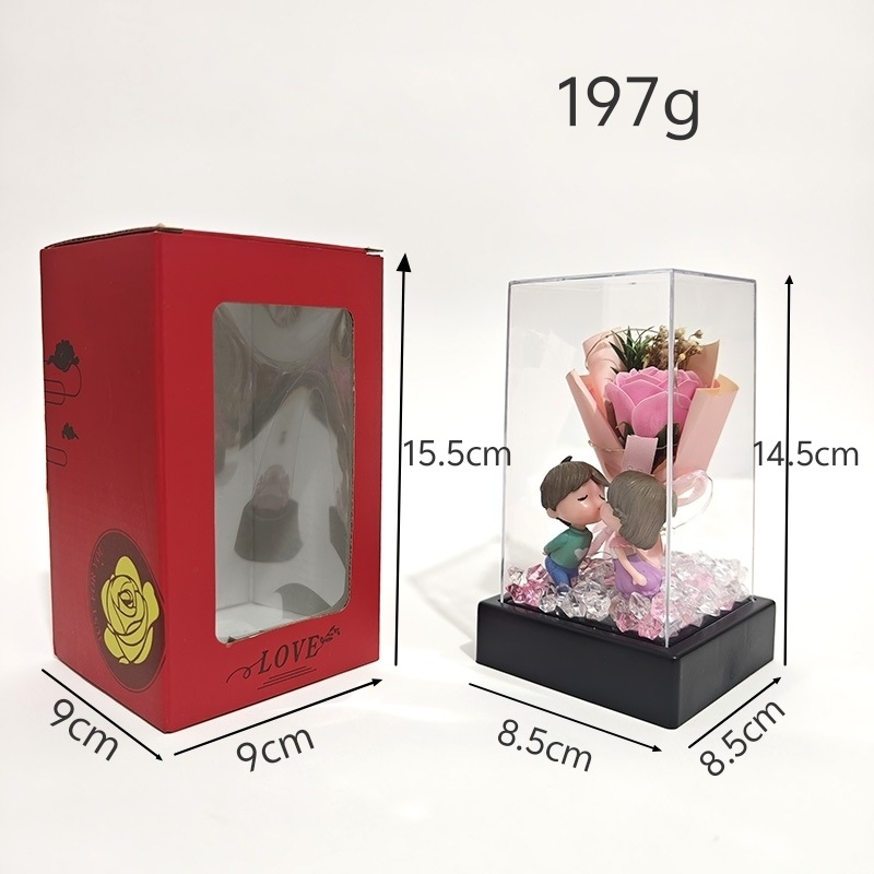 Mini Bouquet di Rose in Sapone con Copertura in Acrilico e LED - Decorazione da Scrivania, Regalo Multiuso (San Valentino, Festa della Mamma) 3 Colori