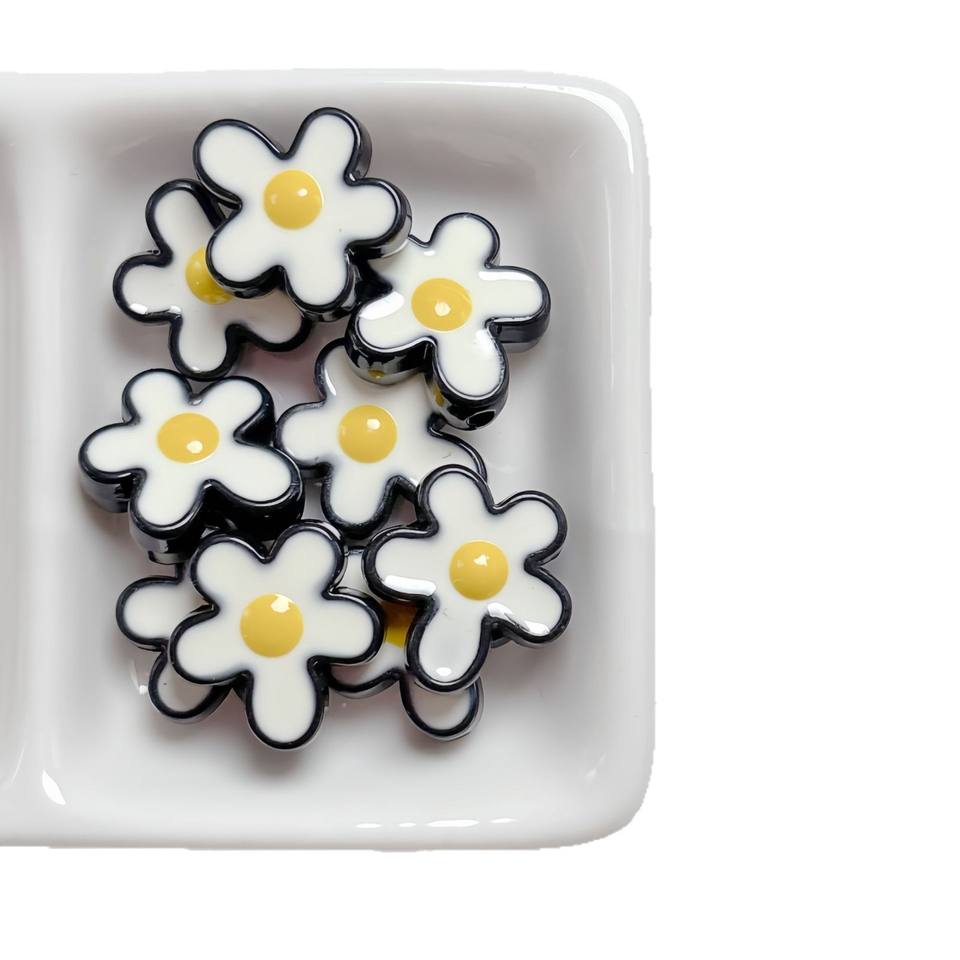 Acrilico carino Kawaii vernice goccia olio due colori tuorlo piccolo fiore foro dritto perline