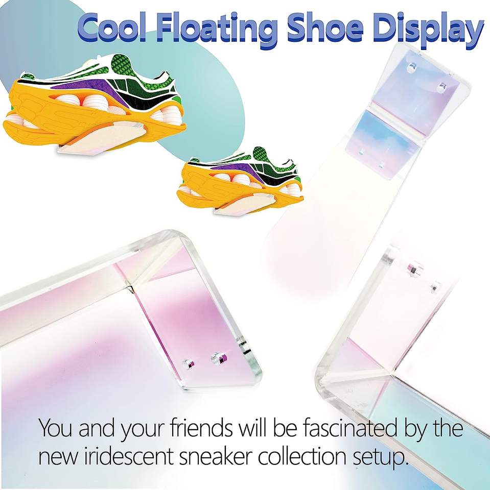 Espositore per scarpe galleggiante in acrilico organizzatore per scarpe iridescente per negozio o Display per la casa scaffali per scarpe da ginnastica arcobaleno montati a parete