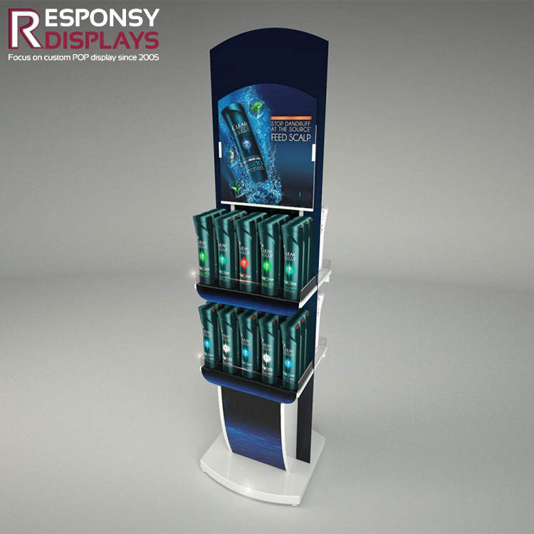 Espositore da pavimento in acrilico per cosmetici e Shampoo con ripiani vassoi e Cabinet per negozi di bellezza