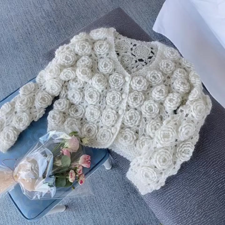 Maglione elegante da donna con bottoni in pizzo all'uncinetto con fiori in acrilico