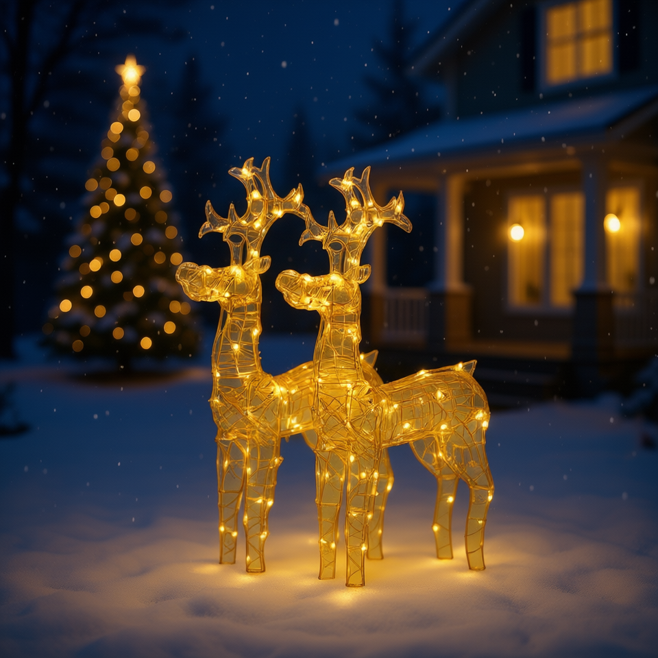 Acrylic Reindeer Christmas Lights Warm White Set Of 2 Festive Holiday Decoration Wall Plug Manual Control