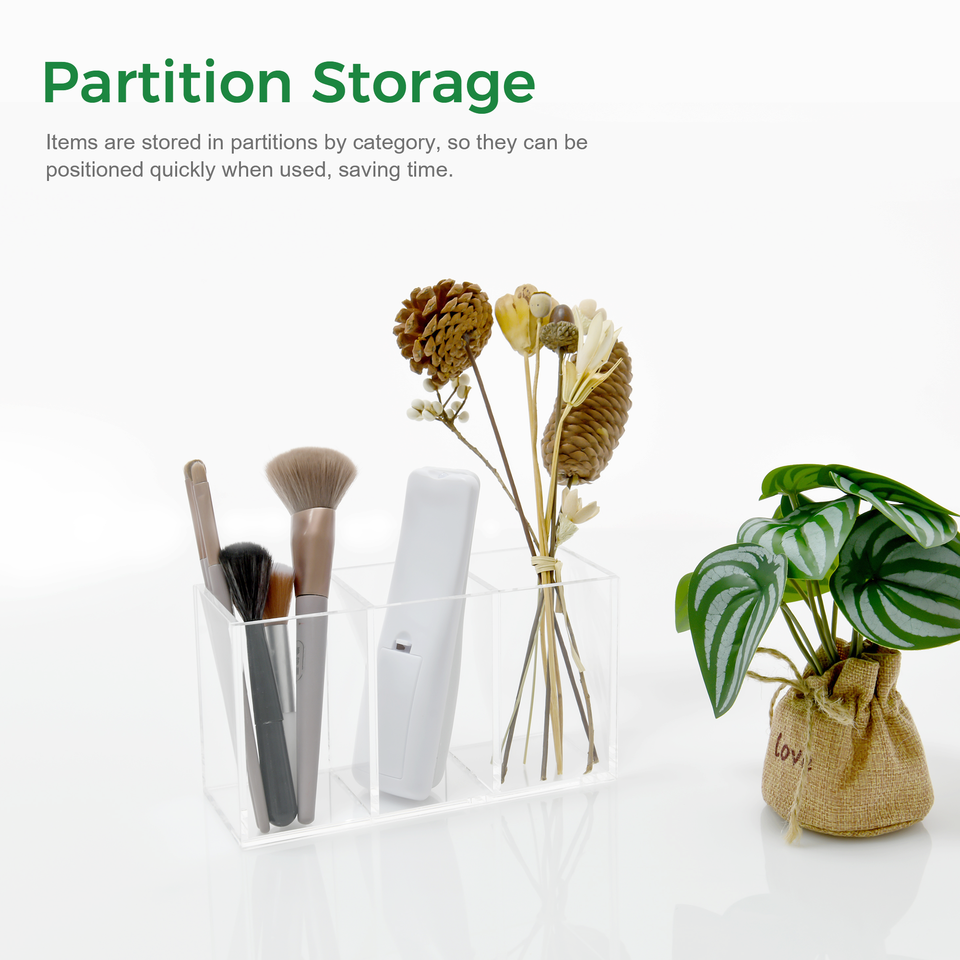 Acrylic Storage Organizers, 3-Compartment Pen & Pencil Holder, Desk Stationery & Makeup Brush Organizer, OEM Bulk Wholesale