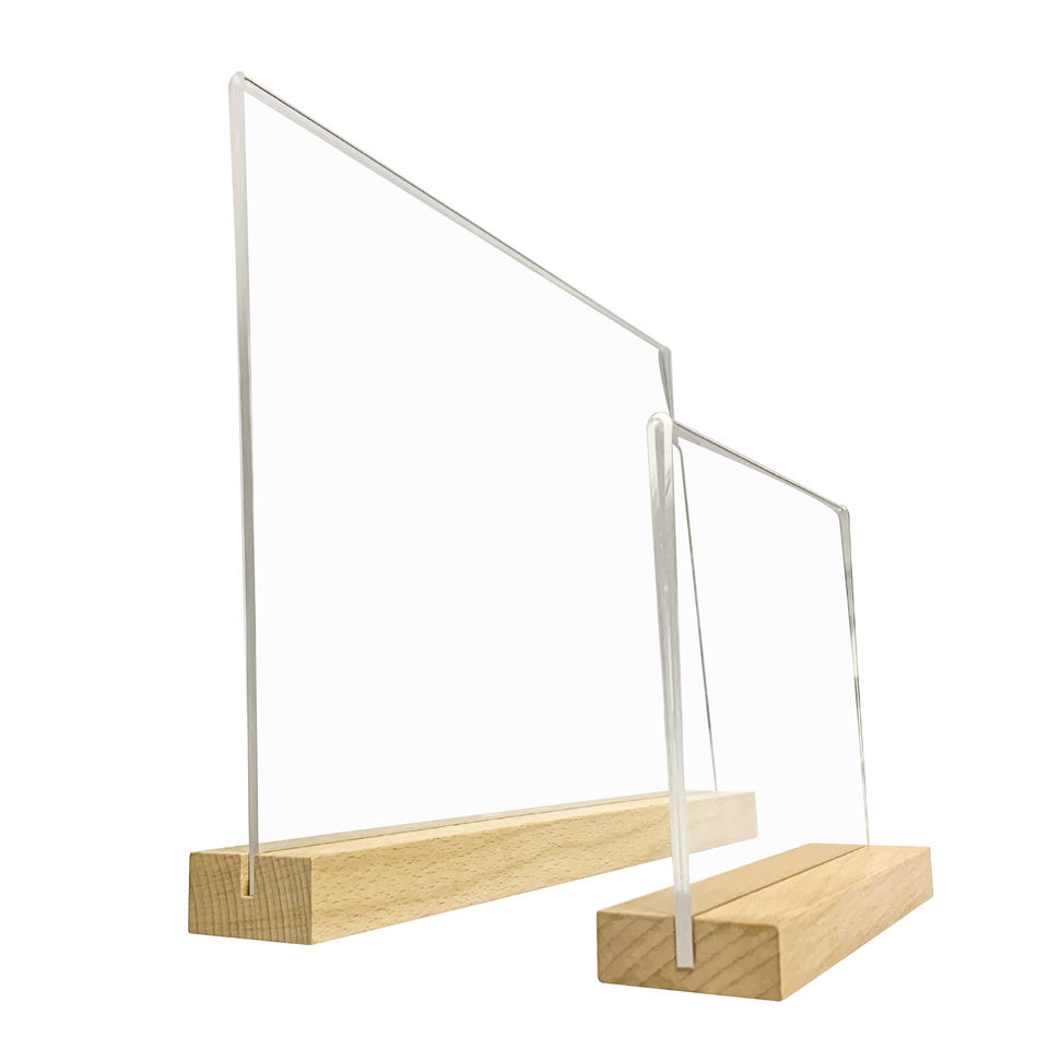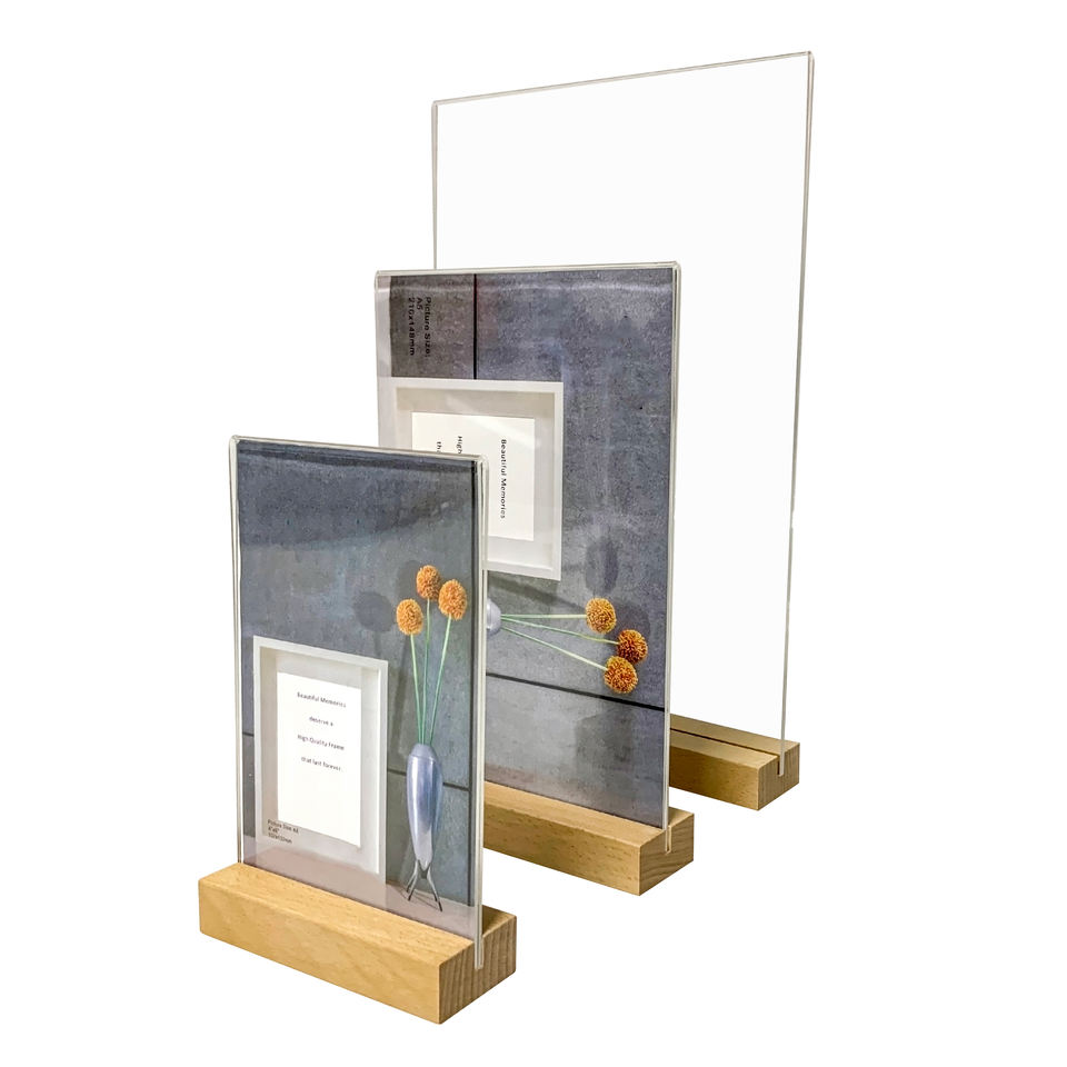 Da Tavolo in acrilico Tenda Telaio Da Tavolo Photo Frame Supporto Del Menu Display Stand Con Base In Legno Formato A4 A5 A6