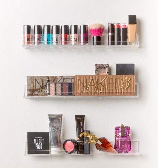 Organizzatore di cosmetici con montaggio a parete in acrilico: porta Palette per il trucco e smalto per unghie in Gel. Forte, Set di 3 scaffali salvaspazio.