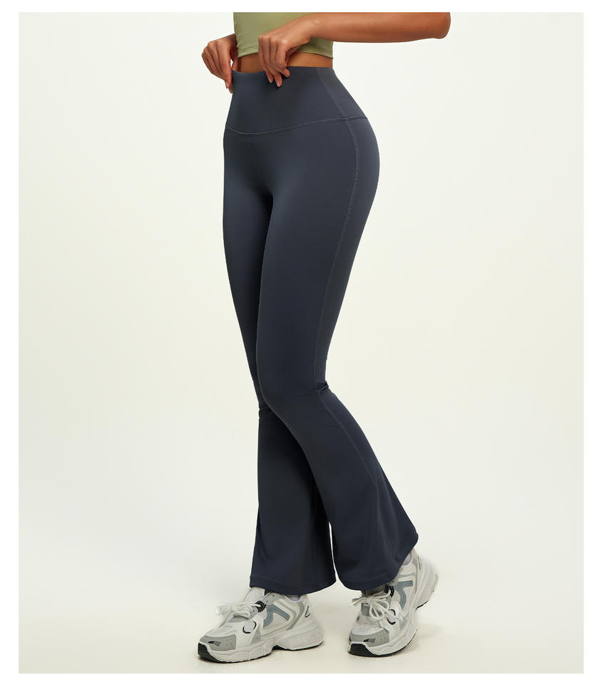 Pantaloni Sportivi Plus Size Attivi a Vita Alta, Aderenti sui Fianchi, Traspiranti, Slim Fit, a Gamba Larga Svasata, con Controllo Pancia, in Spandex, Tinta Unita