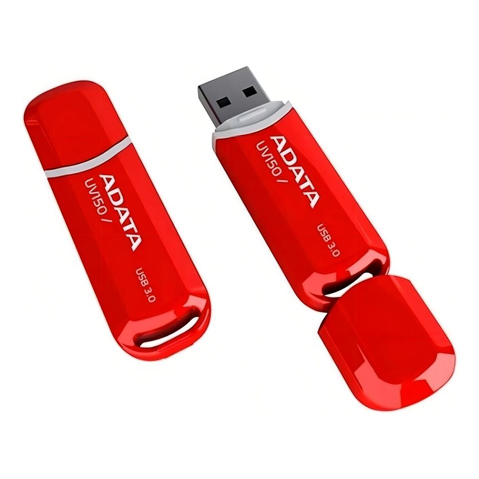 Chiavetta USB Adata UV150 64GB 3.2 Gen 1 Rossa con Cordino, in Plastica, Logo Inciso, Coperchio Rimovibile e Indicatore di Direzione