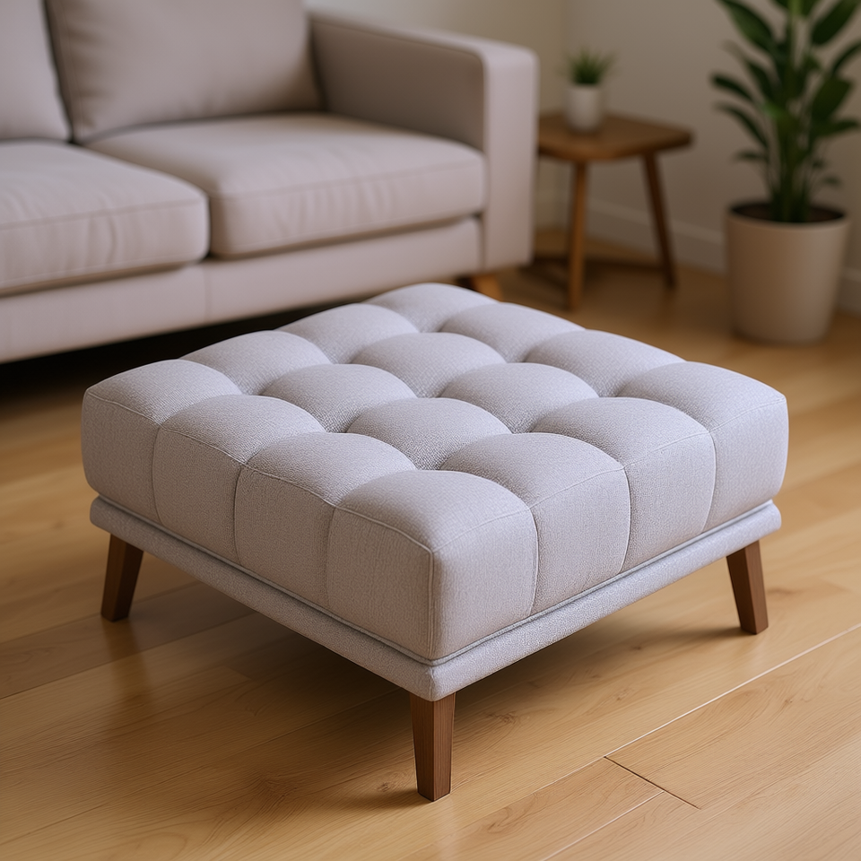 Pouf Imbottito Addison Square in Tessuto, Sgabello Moderno Stile Mid-Century per Soggiorno