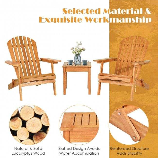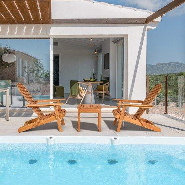 Set di Sedie Adirondack con Braccioli Allargati, Collezione di Mobili da Giardino in 3 Pezzi