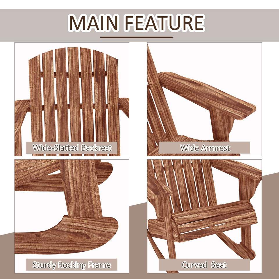 Sedia a dondolo Adirondack con design a doghe in legno carbonizzato per esterni, ideale per salotto e zona braciere