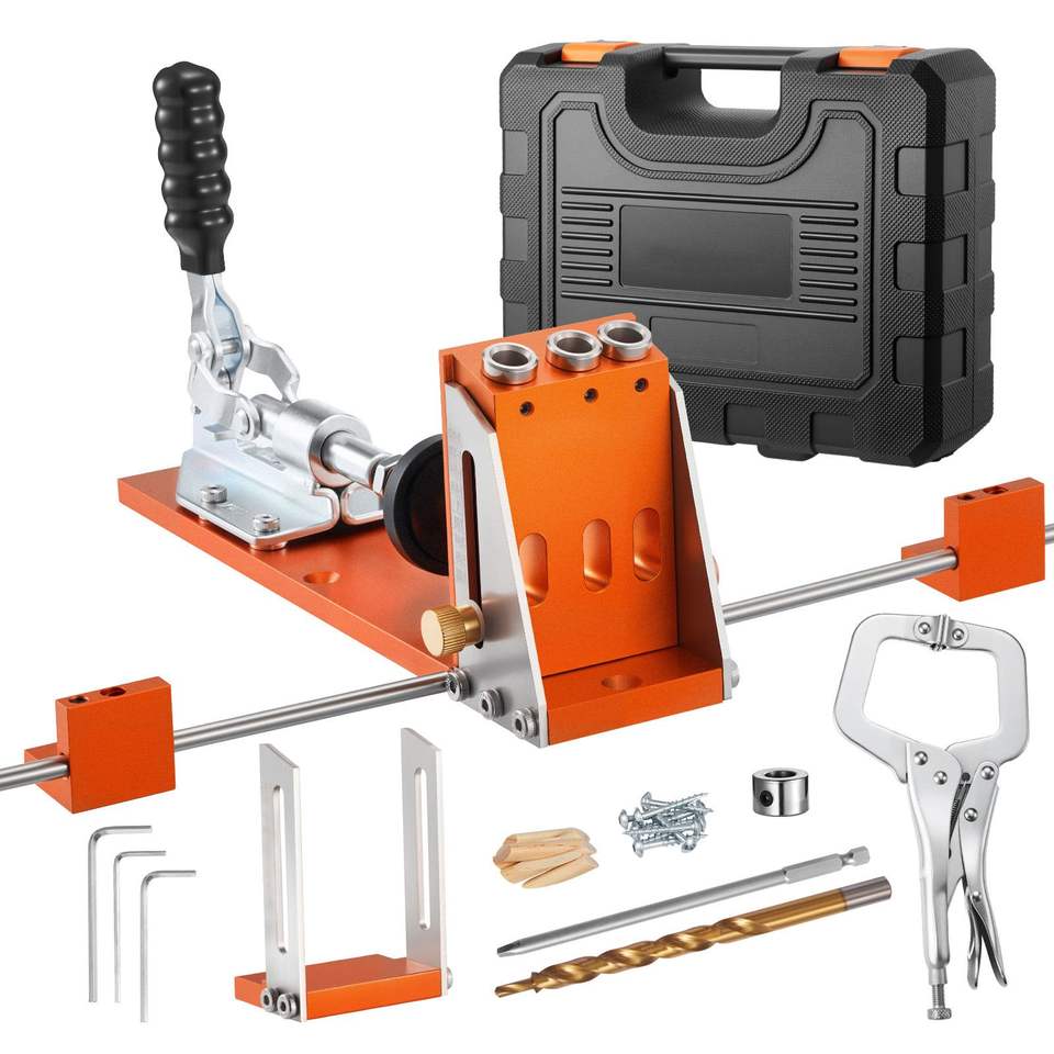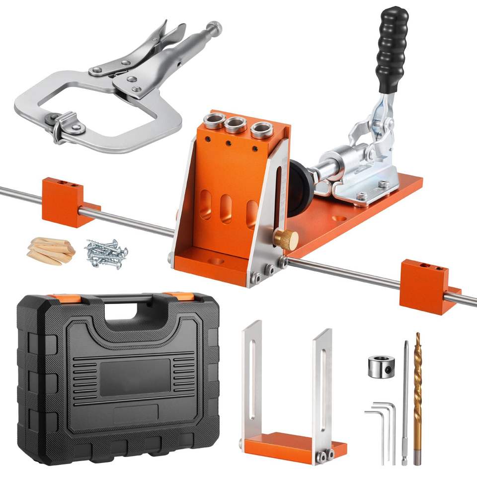 Kit di punzoni per fori a scomparto regolabili da 1/2 a 1-1/2 con custodia, morsetto a C, punzone a gradini, chiave esagonale e punzone S per giunzioni a dita