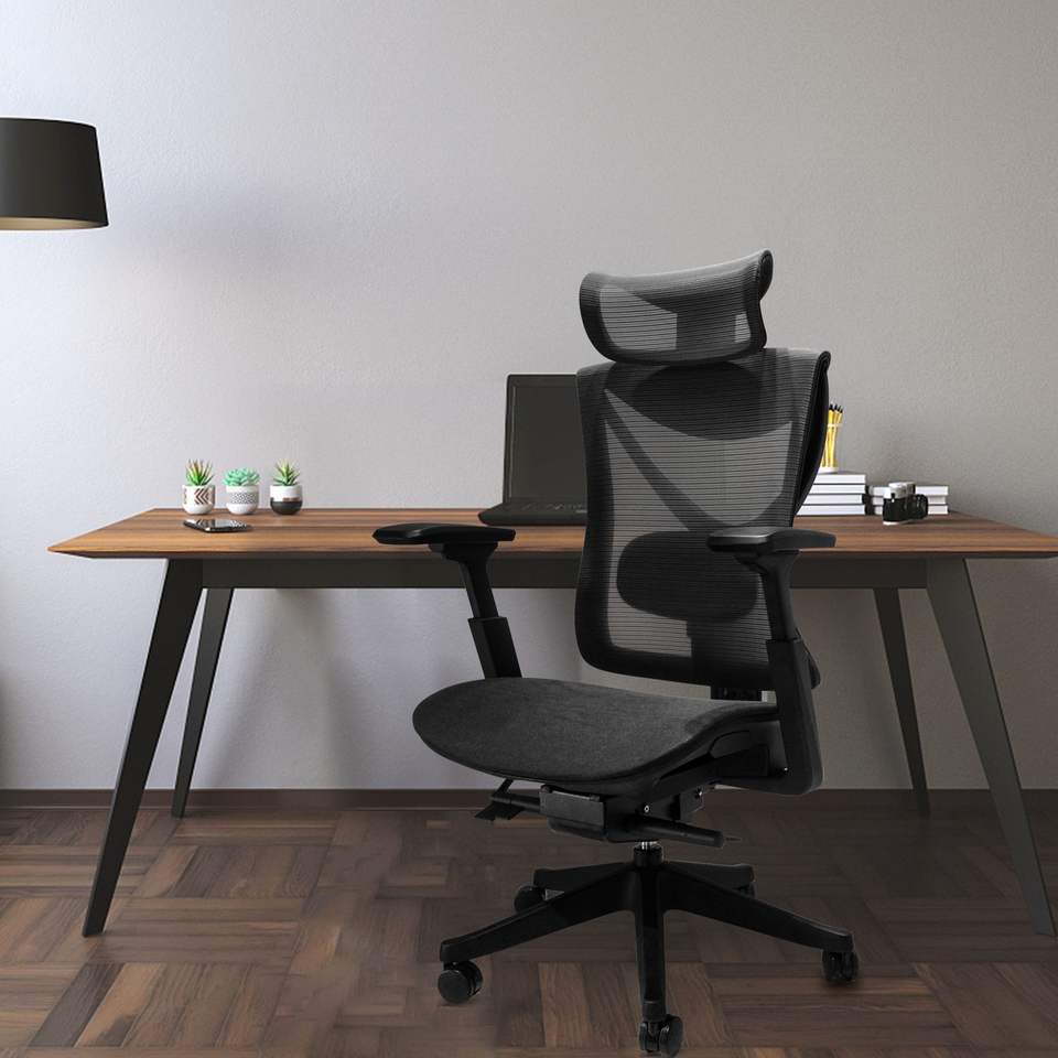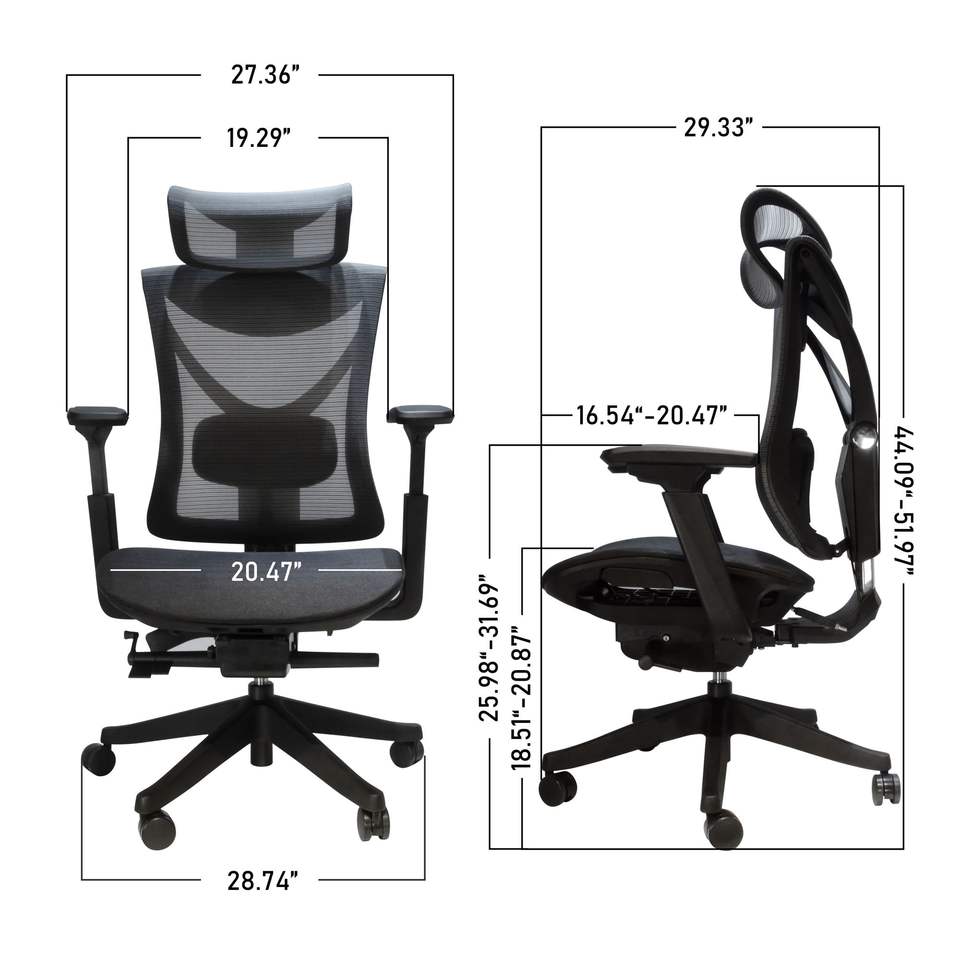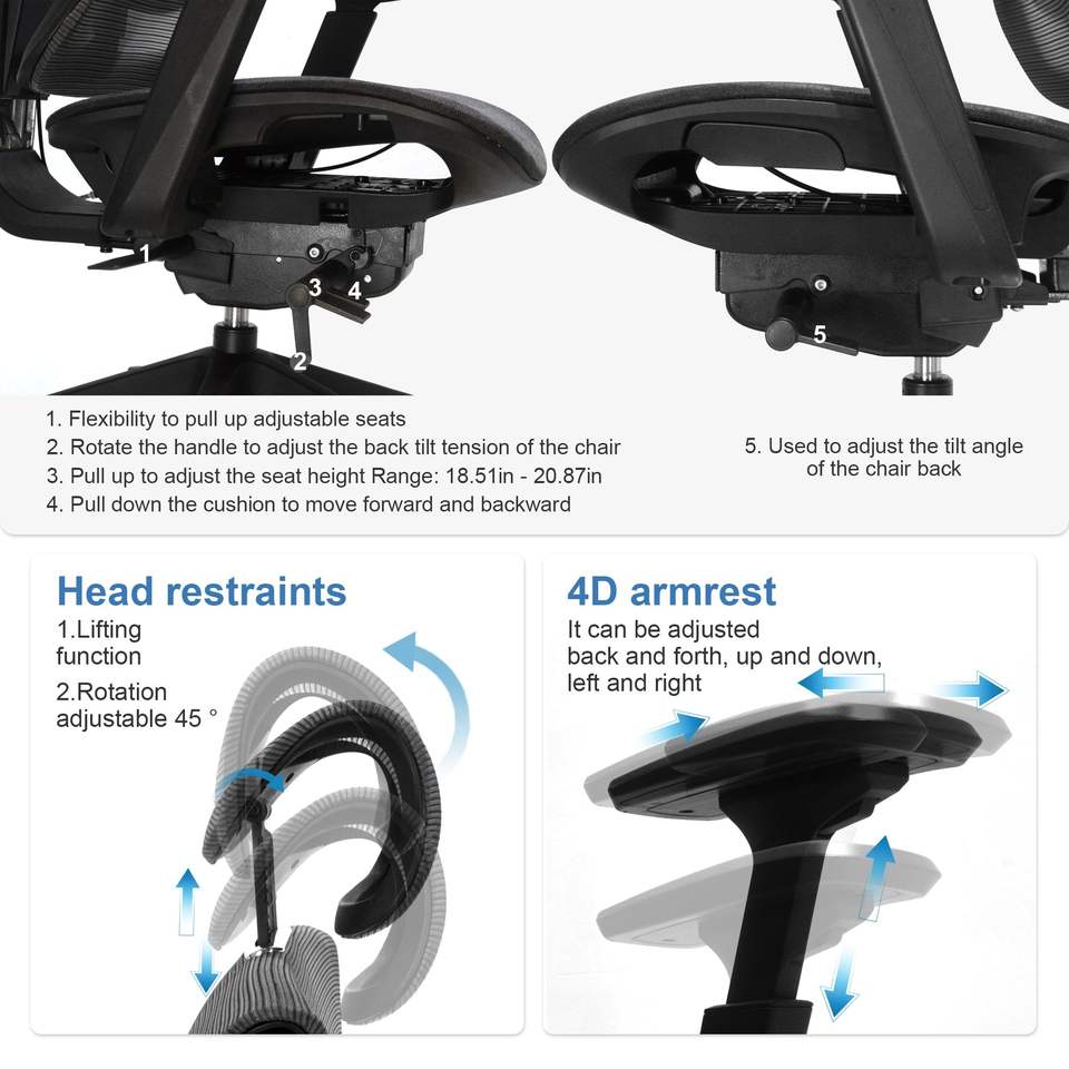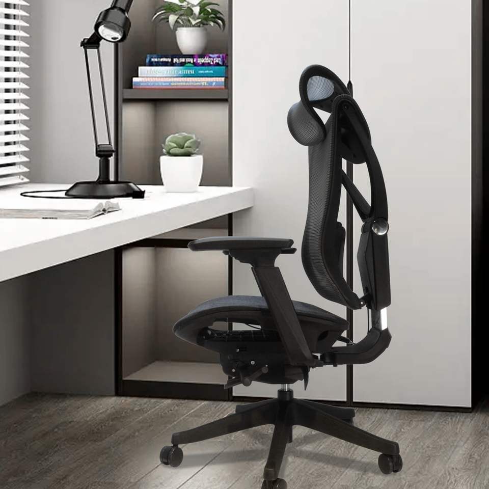 Sedia da Ufficio Grande e Alta con Braccioli e Poggiatesta Regolabili a 115 Gradi, Seduta Confortevole con Supporto Lombare Scorrevole