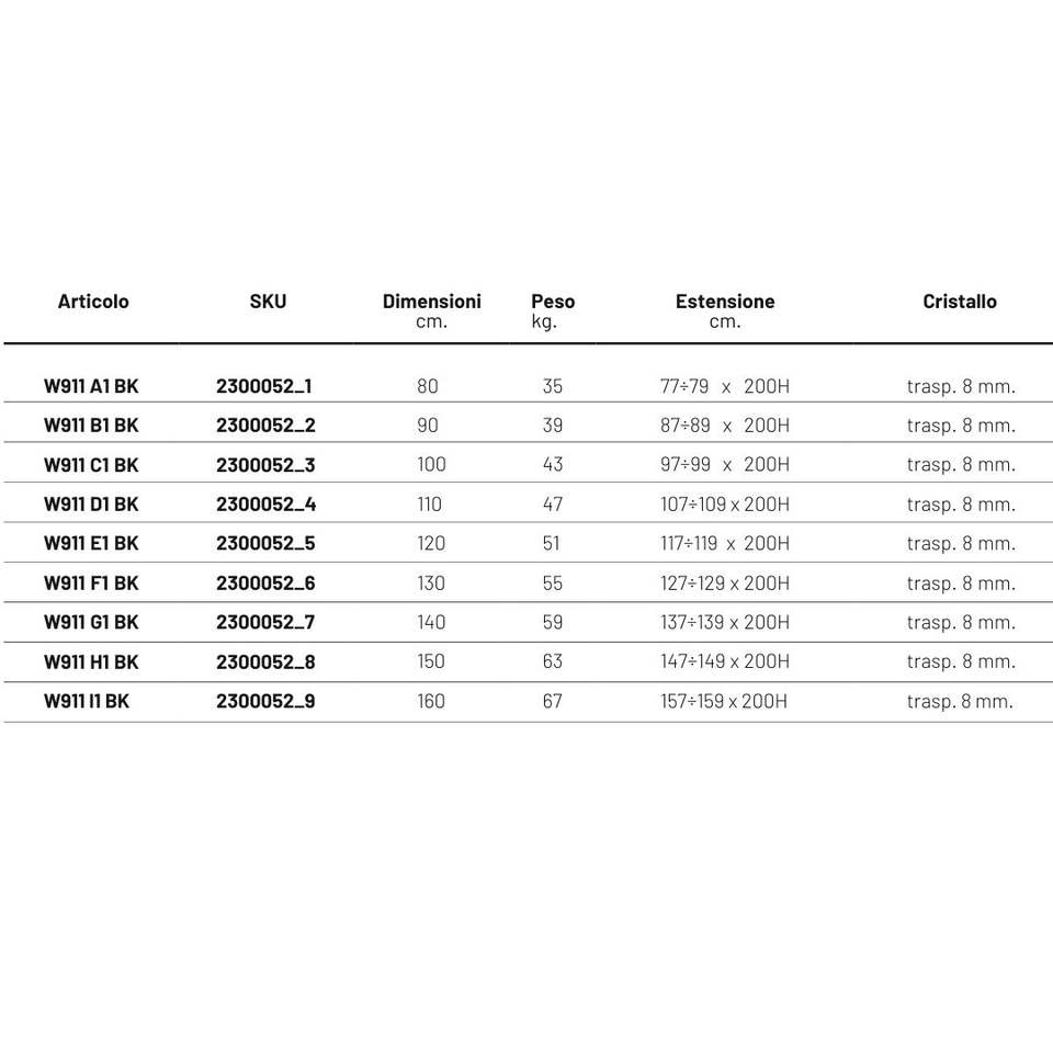 Cabina doccia regolabile da 140 cm a parete Iris linea W911BK 8 mm cristallo nero IX Box doccia dimensioni per docce personalizzabili