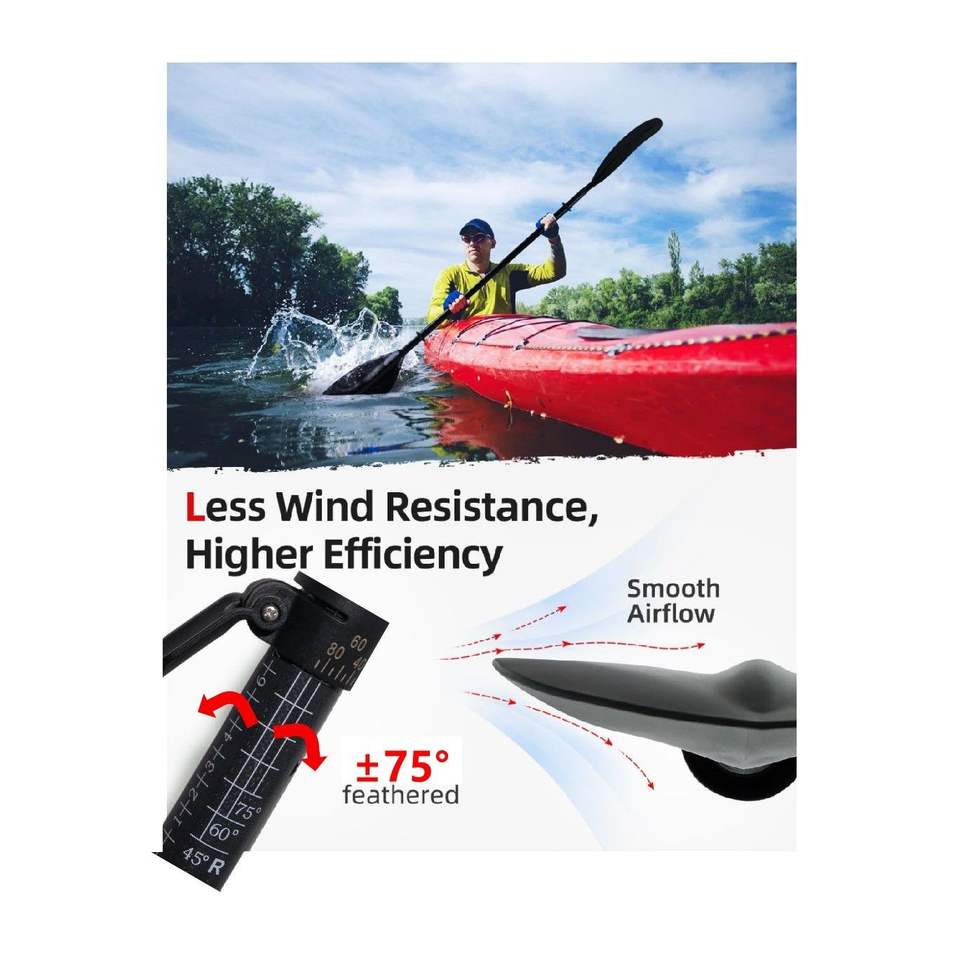 Pagaia per Kayak Regolabile 230-240 cm con Asta in Fibra di Vetro e Pala in PP, Remi Galleggianti per Kayak 90.5-94.5 Pollici