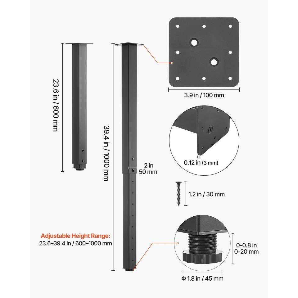 Gambe per Mobili in Acciaio Quadrate Regolabili 24-40 Pollici, Carico Massimo 1200 Libbre, Installazione Rapida, Resistenti per Casa e Ufficio