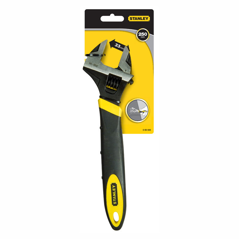 Adjustable 250 mm CrV Steel Wrench Bi-Material Handle Chrome Finish Stanley 0-90-949 for Industrial DIY OEM GS Certified