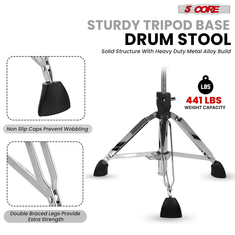 Sgabello per Batteria Regolabile da 26,5 Pollici con Schienale, Seduta Imbottita da 4 Pollici con Top in Velluto e Capacità di 200 Kg, Accessorio per Strumenti Musicali