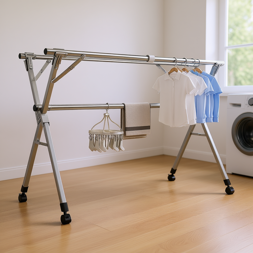 Stendibiancheria Pieghevole in Metallo a 3 Livelli Regolabile con 20 Ganci per Uso Interno ed Esterno, Design a X, Stile Minimalista