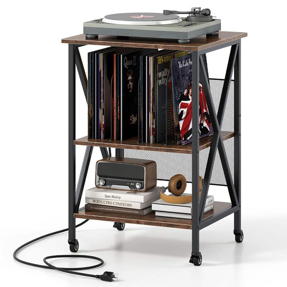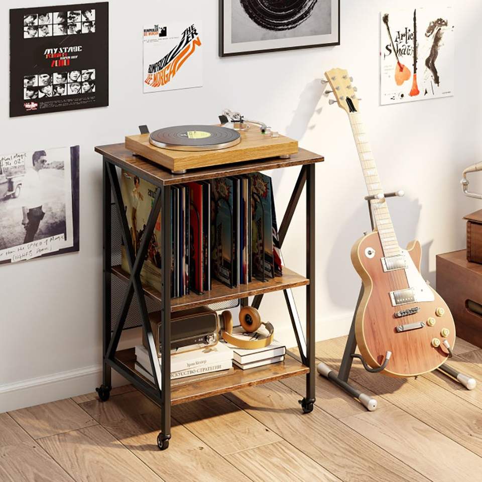 Supporto Regolabile a 3 Livelli per Giradischi con Stazione di Ricarica, Scaffalature Premium