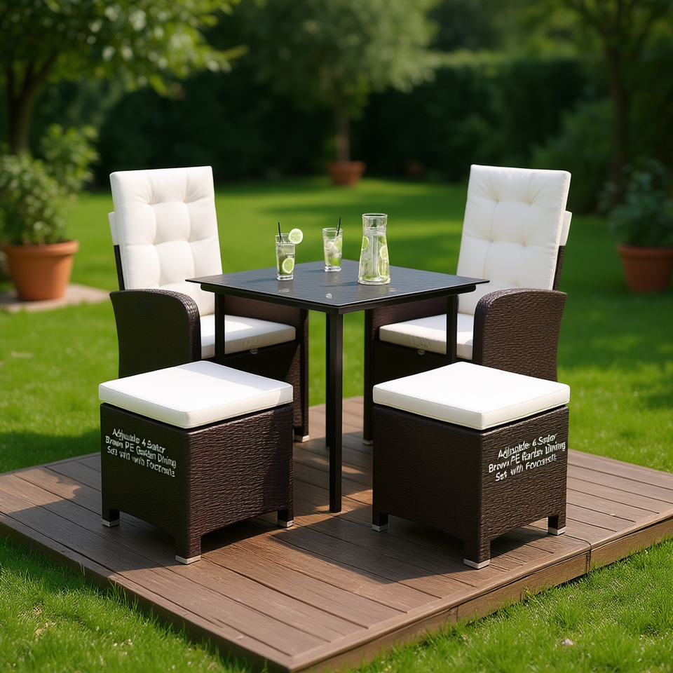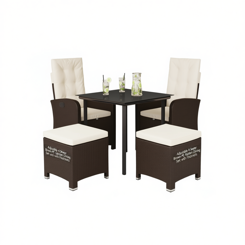 Set da Pranzo da Giardino Regolabile in Rattan PE Marrone a 4 Posti con Poggiapiedi