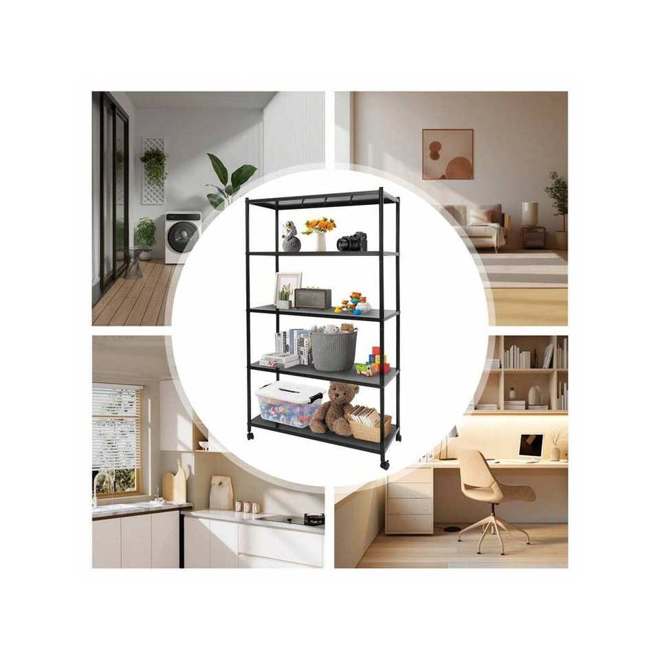 Adjustable 5 Tier Kitchen Storage Rack with Wheels Home Organization Floor Standing Rack